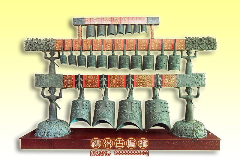 22件A型曾侯乙青銅編鐘演奏型,是我公司董事長(zhǎng)、工藝美術(shù)大師王蒲琴女士根據(jù)曾侯乙編鐘設(shè)計(jì)制作,編鐘外形按照聞名世界的曾侯乙編鐘設(shè)計(jì)制作,編鐘及佩劍武士為青銅鑄造,采用國(guó)際標(biāo)準(zhǔn)樂音音高A=440Hz調(diào)音,音域五個(gè)八度,可以旋宮轉(zhuǎn)調(diào)演奏古今中外樂曲,編鐘大梁采用優(yōu)質(zhì)松木制作,表面噴漆,彩繪花紋;另配有保管編鐘用的木箱,便于運(yùn)輸和儲(chǔ)存。